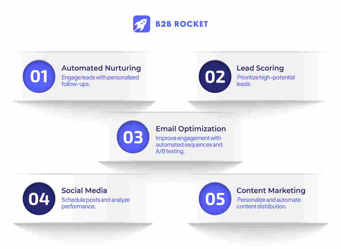 By automating repetitive tasks like sending emails, posting on social media, and tracking customer interactions, businesses can free up valuable time for their employees. This allows them to focus on more important tasks, like creating new marketing strategies or engaging with potential customers.