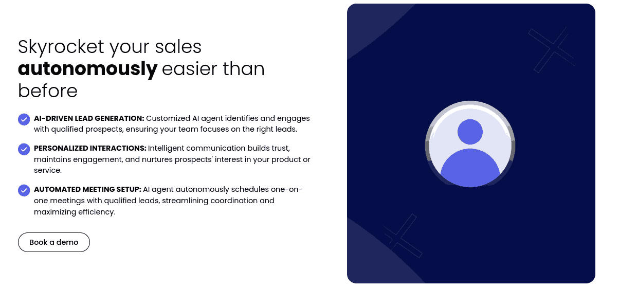 Simplify your sales process and focus on building relationships with B2B Rocket for lead generation. Set up automated meetings with interested leads, letting our AI handle the busy work and giving you time to nurture those valuable connections.