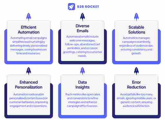 Automation ensures that every email is timely and personalized. For example, an automated email can remind customers to complete the purchase if they leave items in their online shopping cart.