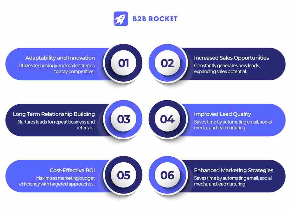 Effective B2B lead generation means you’re always finding new opportunities to grow your business. It helps ensure that your business can keep moving forward, selling more products or services, and ultimately increasing your revenue.