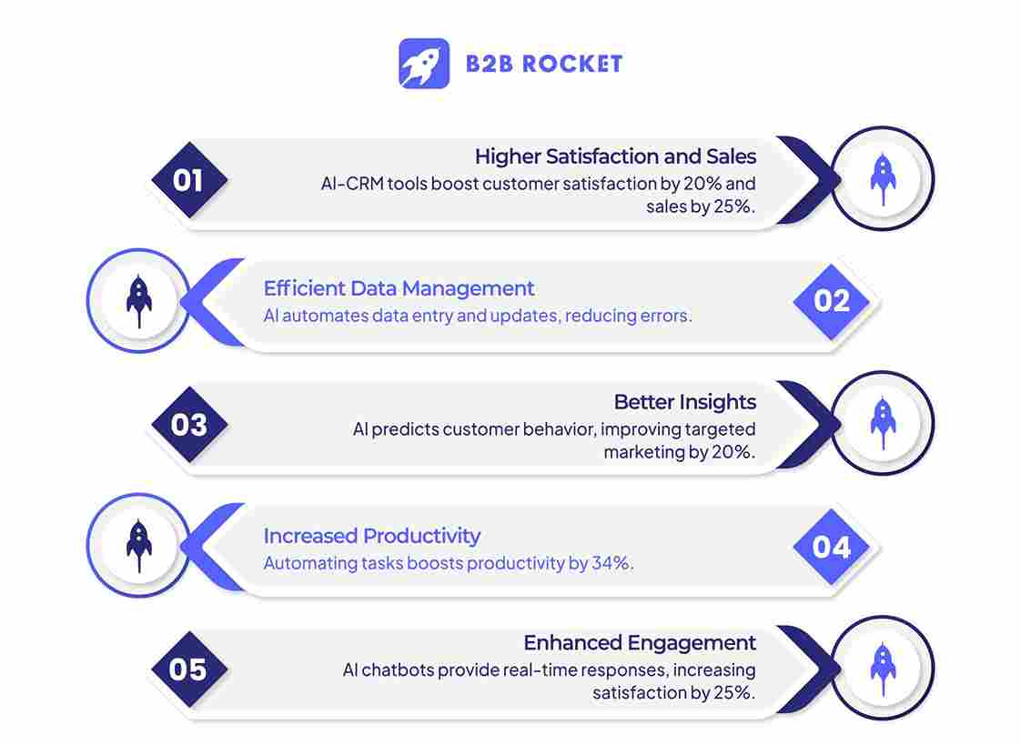 Fusée B2B Les agents d'IA améliorent encore les capacités CRM en révolutionnant la génération de prospects, en orchestrant des réunions automatisées et en s'intégrant parfaitement aux systèmes existants. Ils agissent comme des assistants super organisés, permettant aux entreprises d'établir de solides relations avec leurs clients et de stimuler la croissance sur le marché concurrentiel d'aujourd'hui.